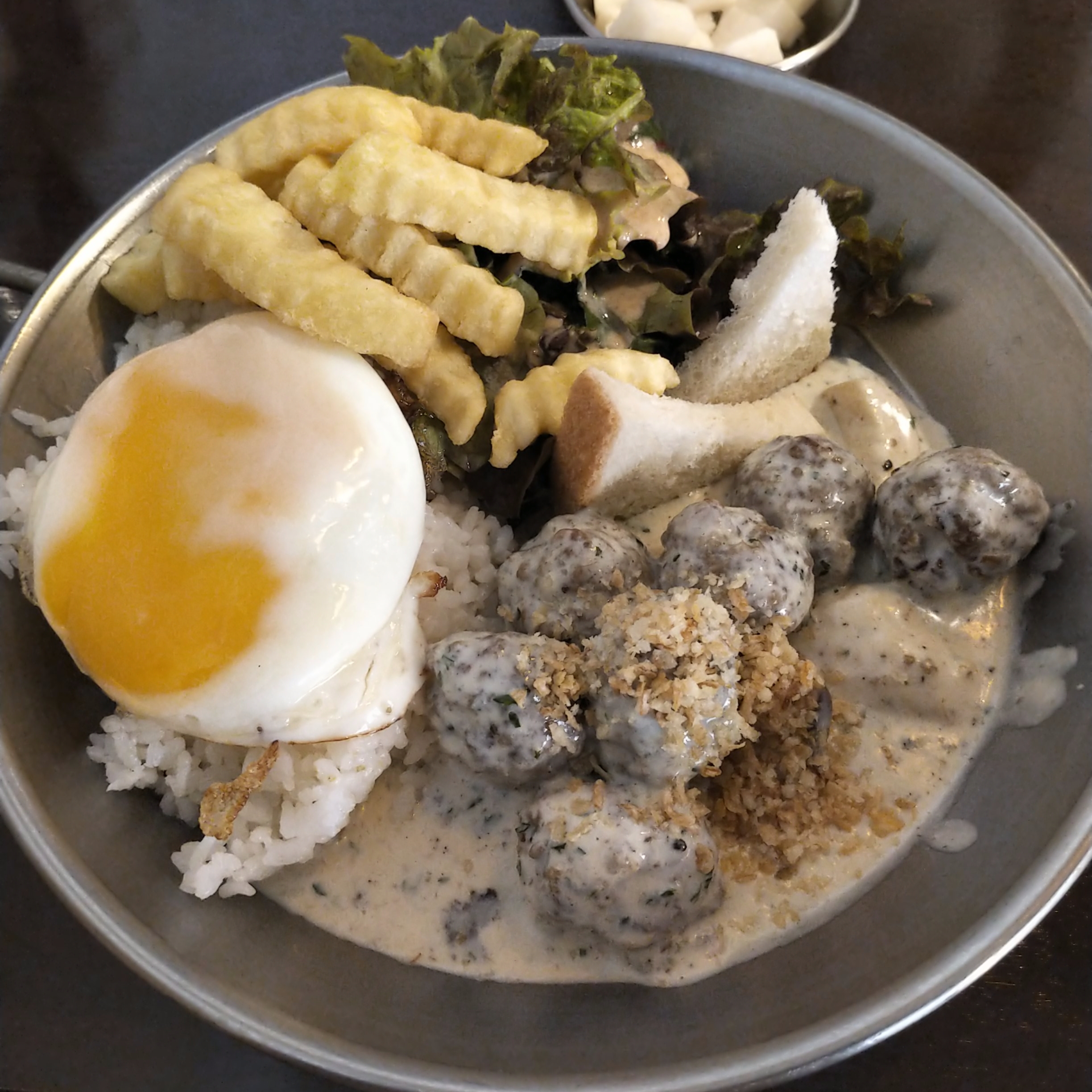 장점: 그레이비 소스 엄청 맛있다! 미트볼은 엄청 뜨거우니 조심할 것