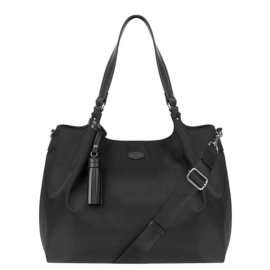 자칫 밋밋해보일 수 있는 블랙 나일론 백에