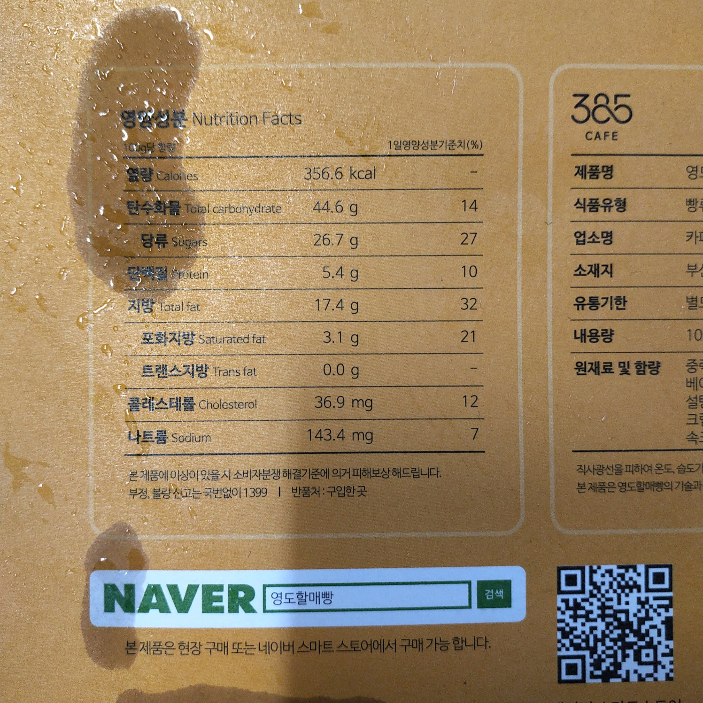 영도할매빵 칼로리는 100g 당 356.6 kcal입니다~