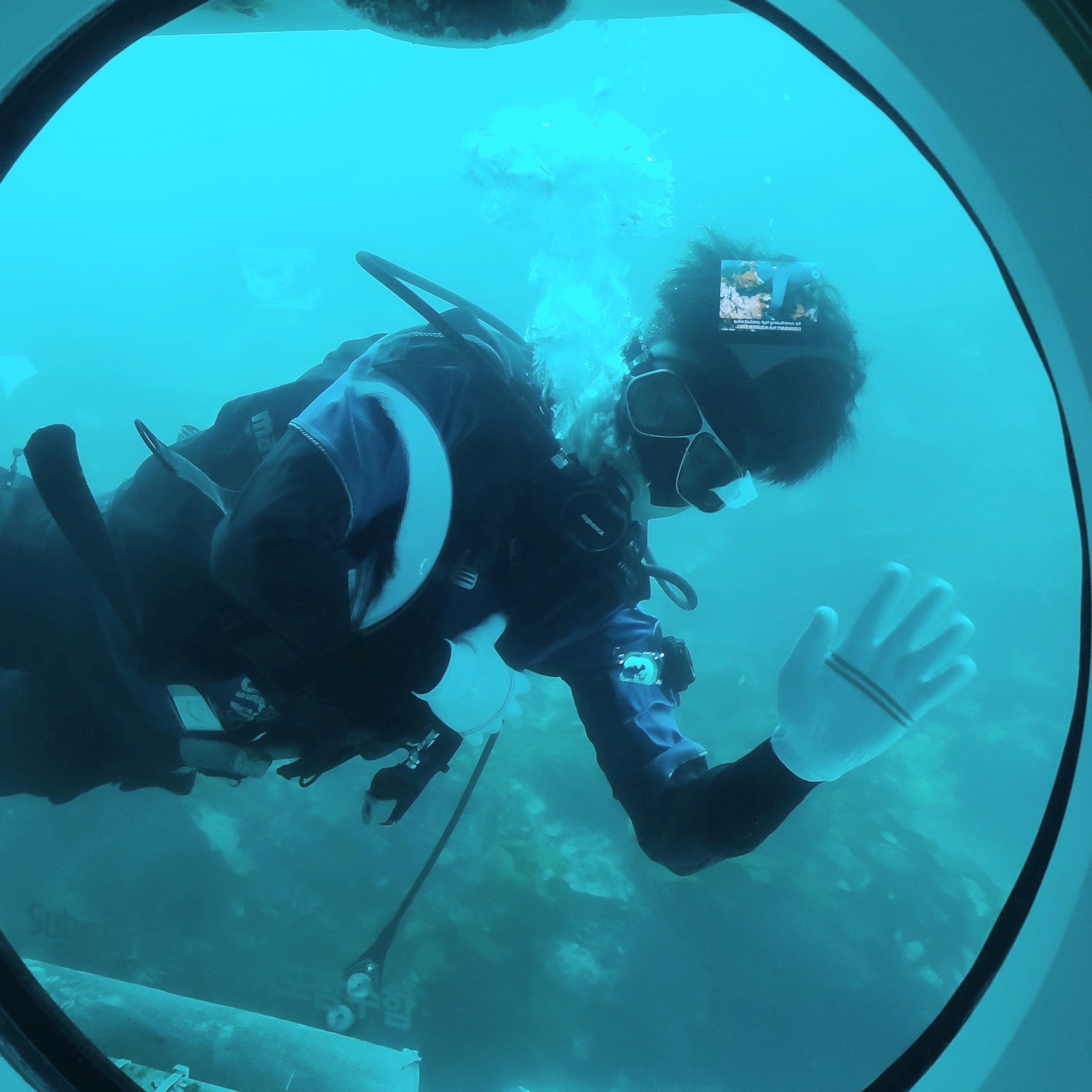 이제 잠수가 다 끝나고 다시 지상으로 올라왔어요!