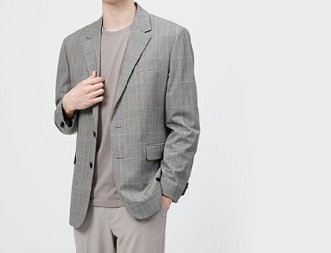 체크 패턴의 블레이저 재킷으로
