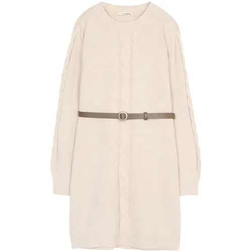 리스트 솔리드 벨티드 니트 원피스