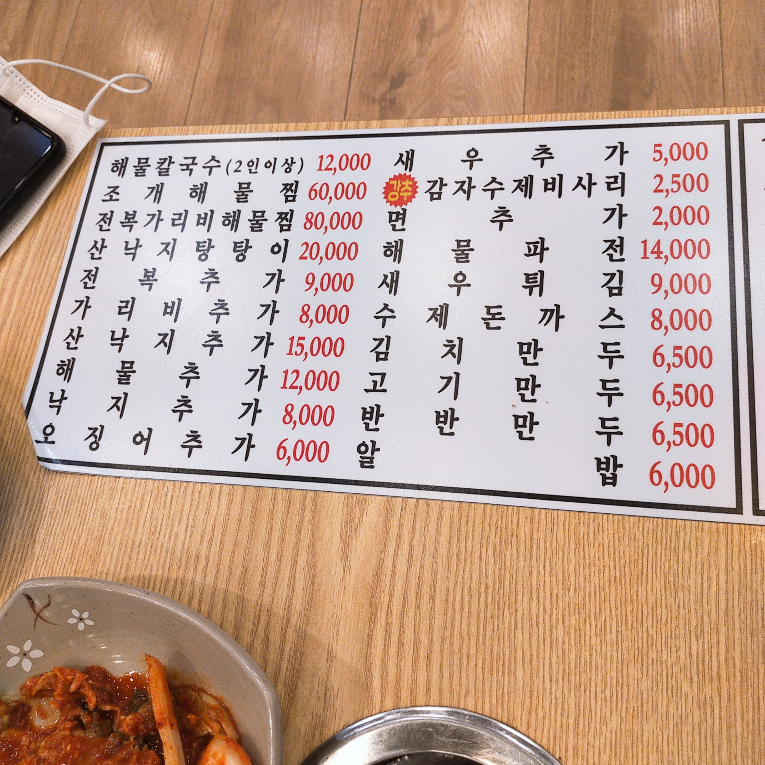 소래포구 통큰해말 손칼국수집 가격은