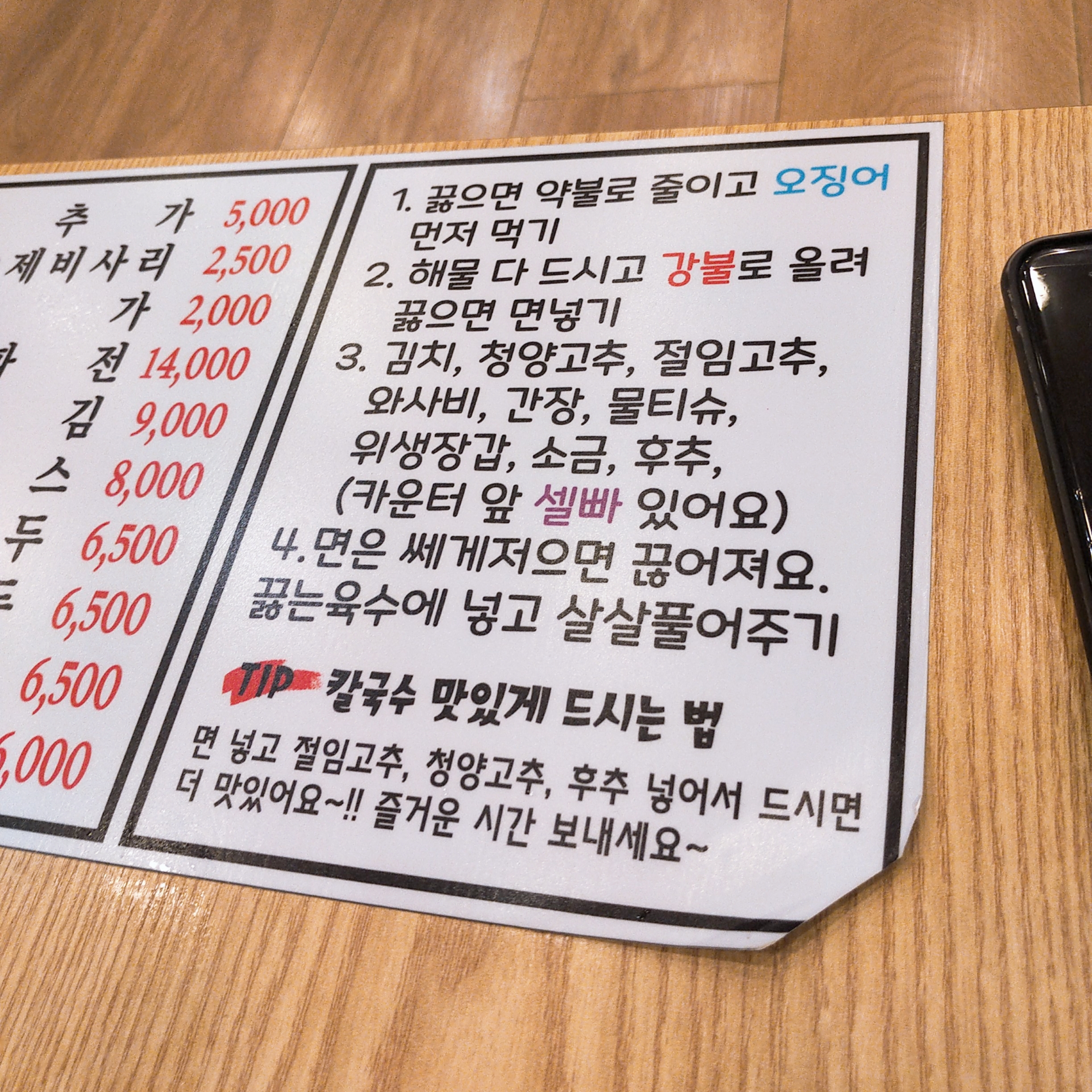 소래포구 해물 손칼국수 맛있게 먹는 법이 적혀 있네요 ㅋㅋㅋ