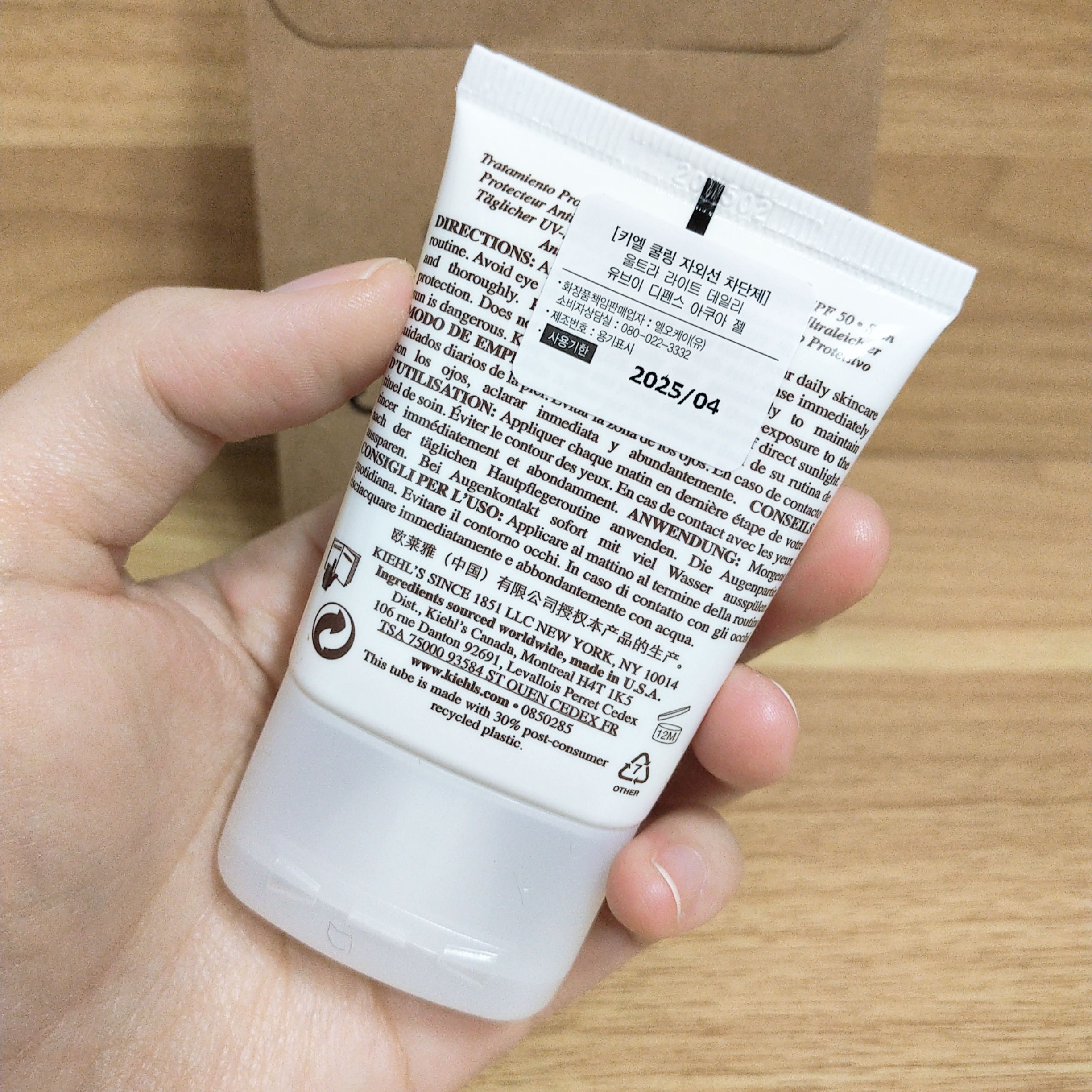 데일리로 바를 용도로 구매한 키엘 쿨링 자외선 차단제입니다.