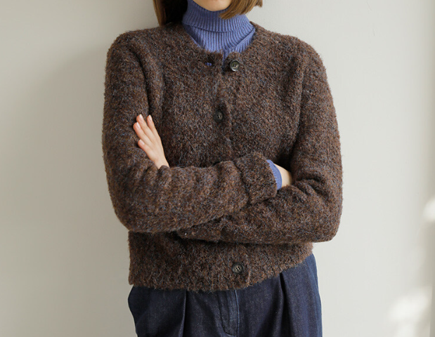 뽀글뽀글한 원단의 니트 가디건이에요.