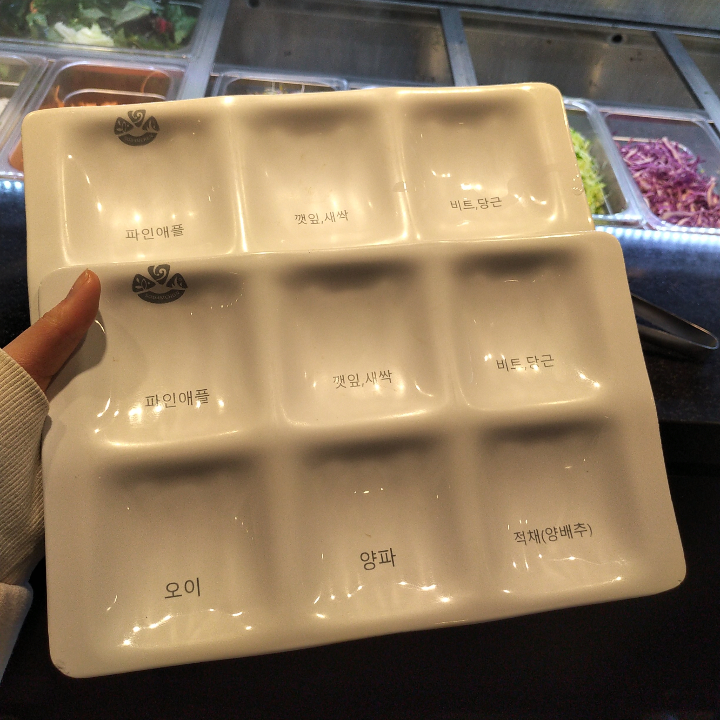 이건 재료를 담는 그릇인데요, 재료는 셀프바에서 담으면 돼요.