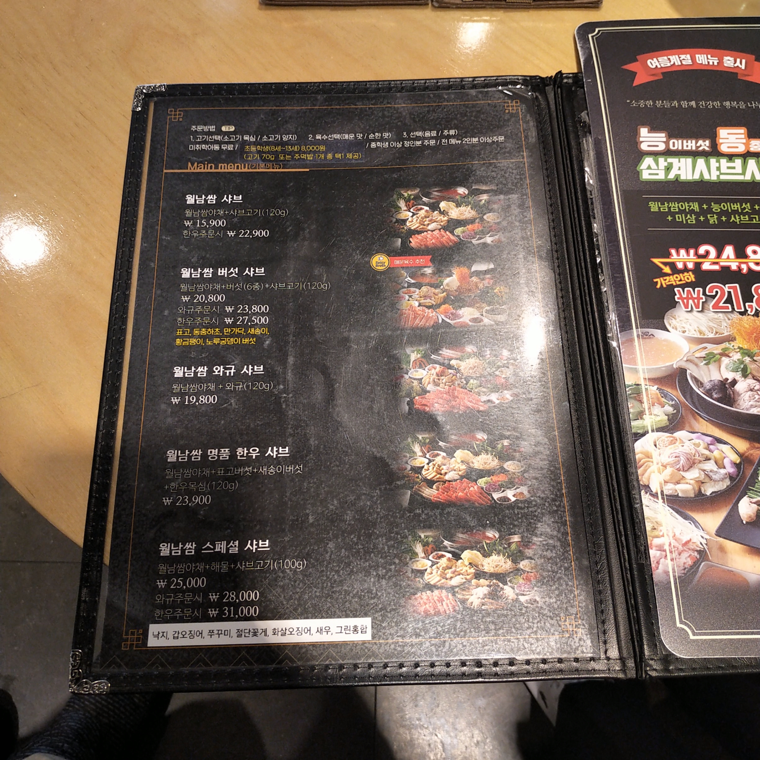 저희는 월남쌈 버섯 샤브를 주문했어요~!