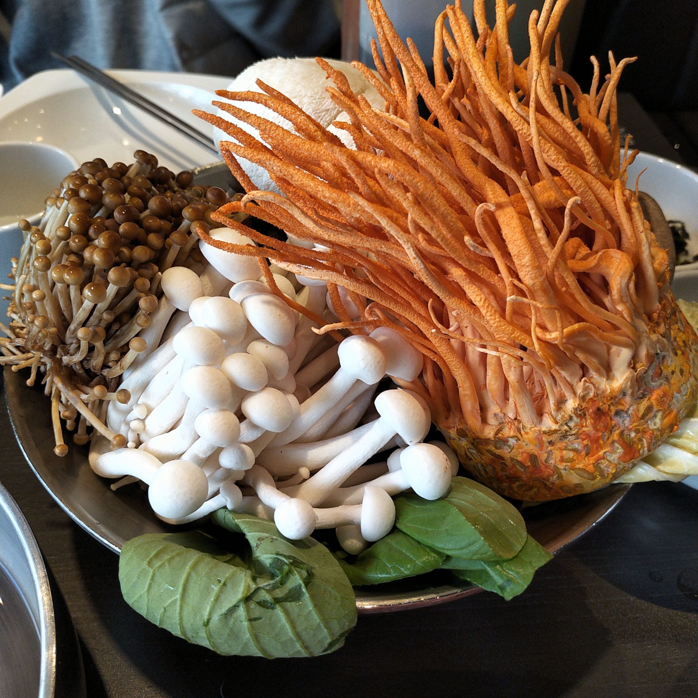 소담촌 월남쌈 버섯 샤브는 표고버섯, 동충하초, 만가닥버섯, 새송이버섯, 황금팽이버섯, 노루궁뎅이버섯이 들어가요.