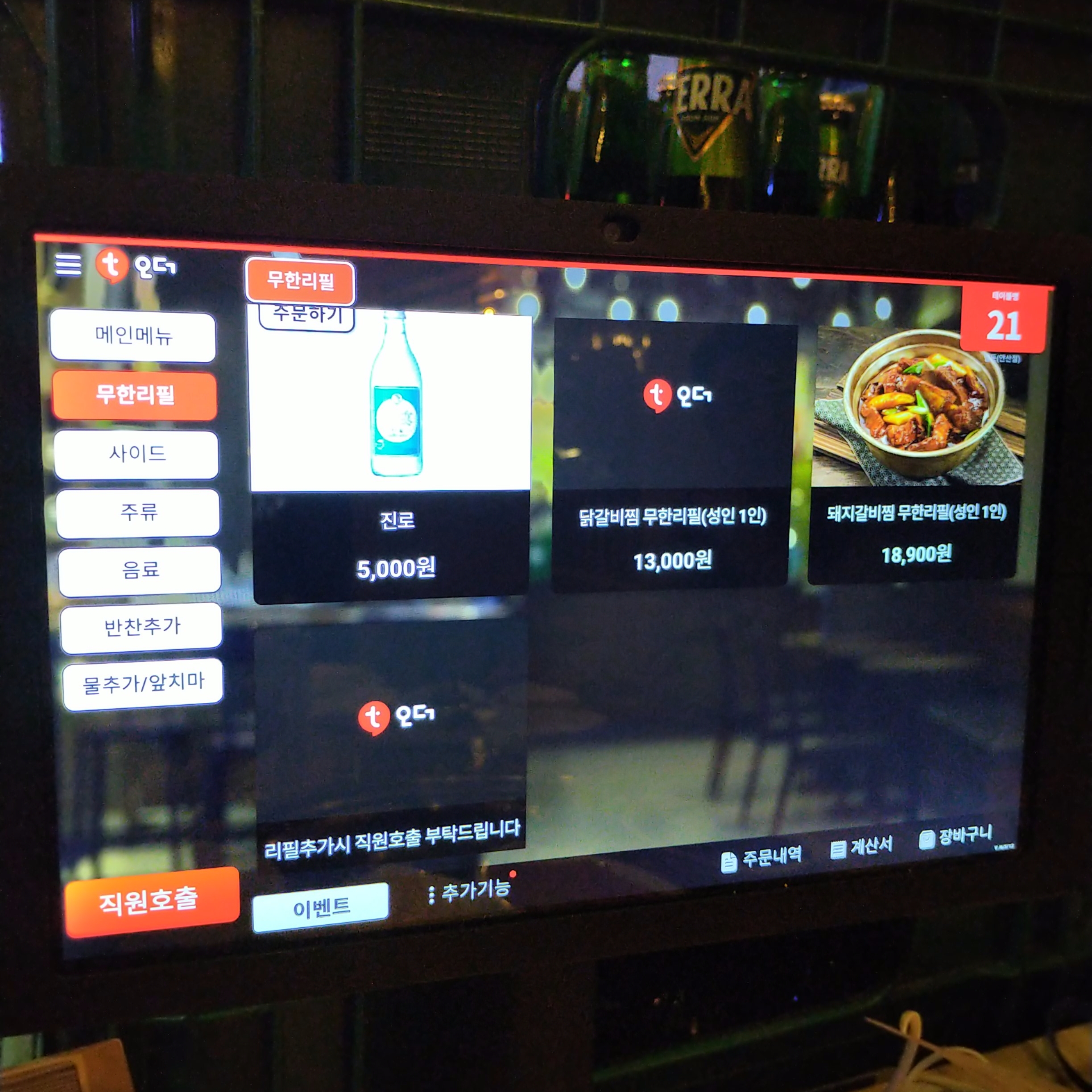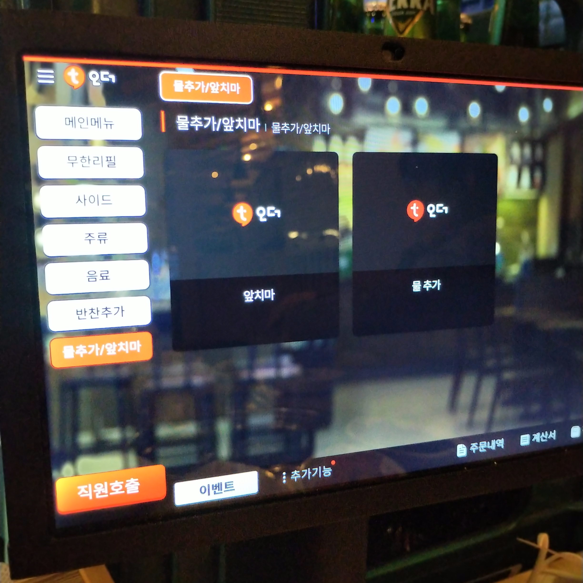 맵돈의 가장 달라진 점이라면.. 바로 좌석마다 키오스크가 있다는 점이에요!