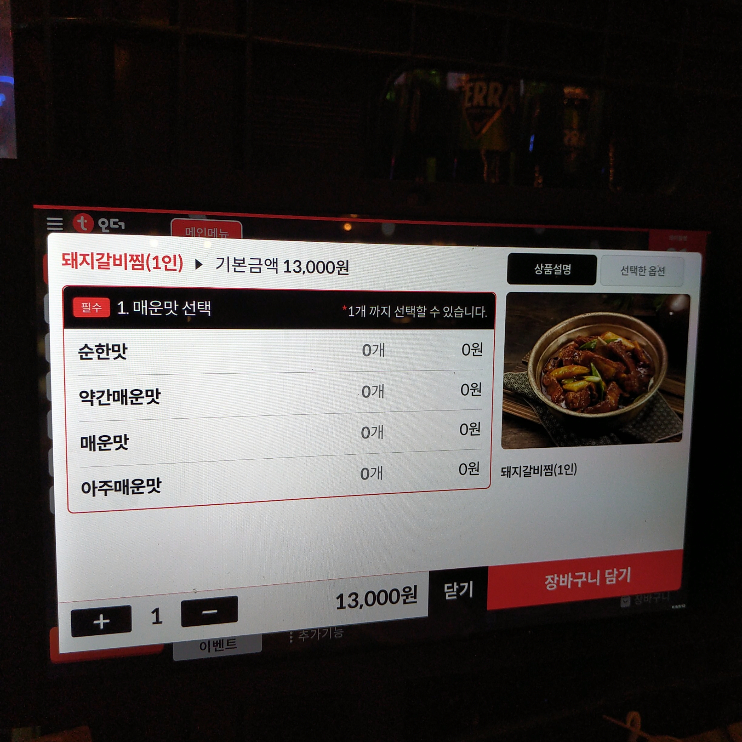 돼지갈비찜은 1인 기준 13,000원이구요, 소갈비찜은 19,000원이에요.