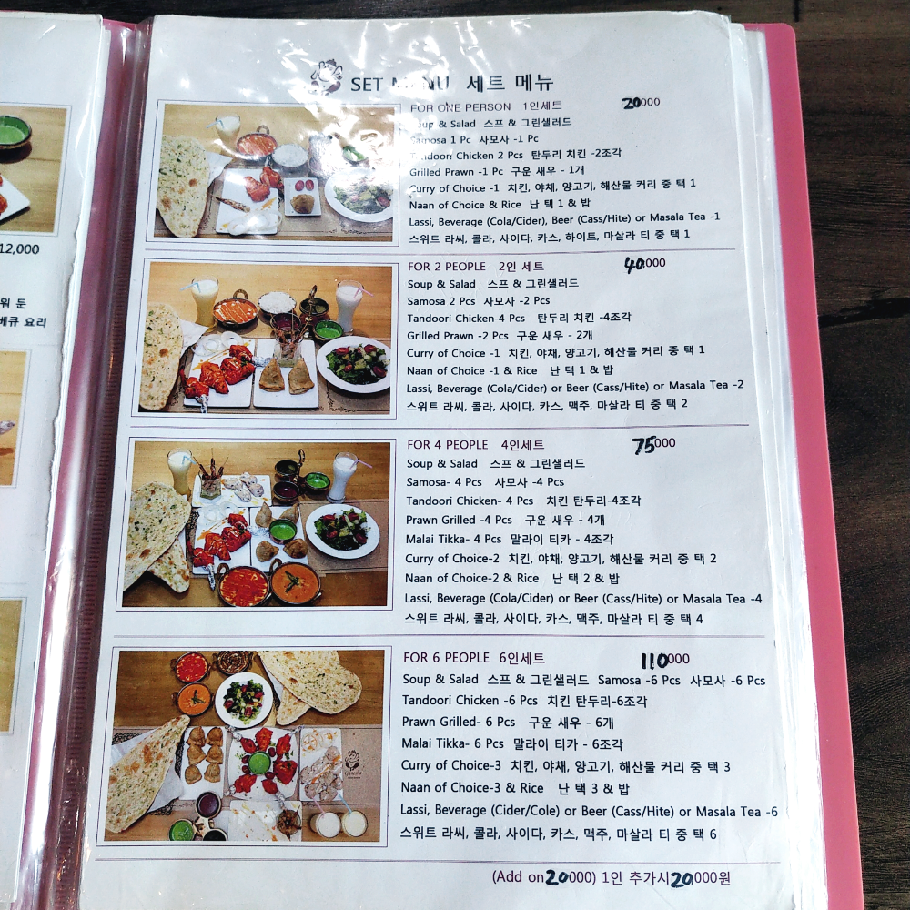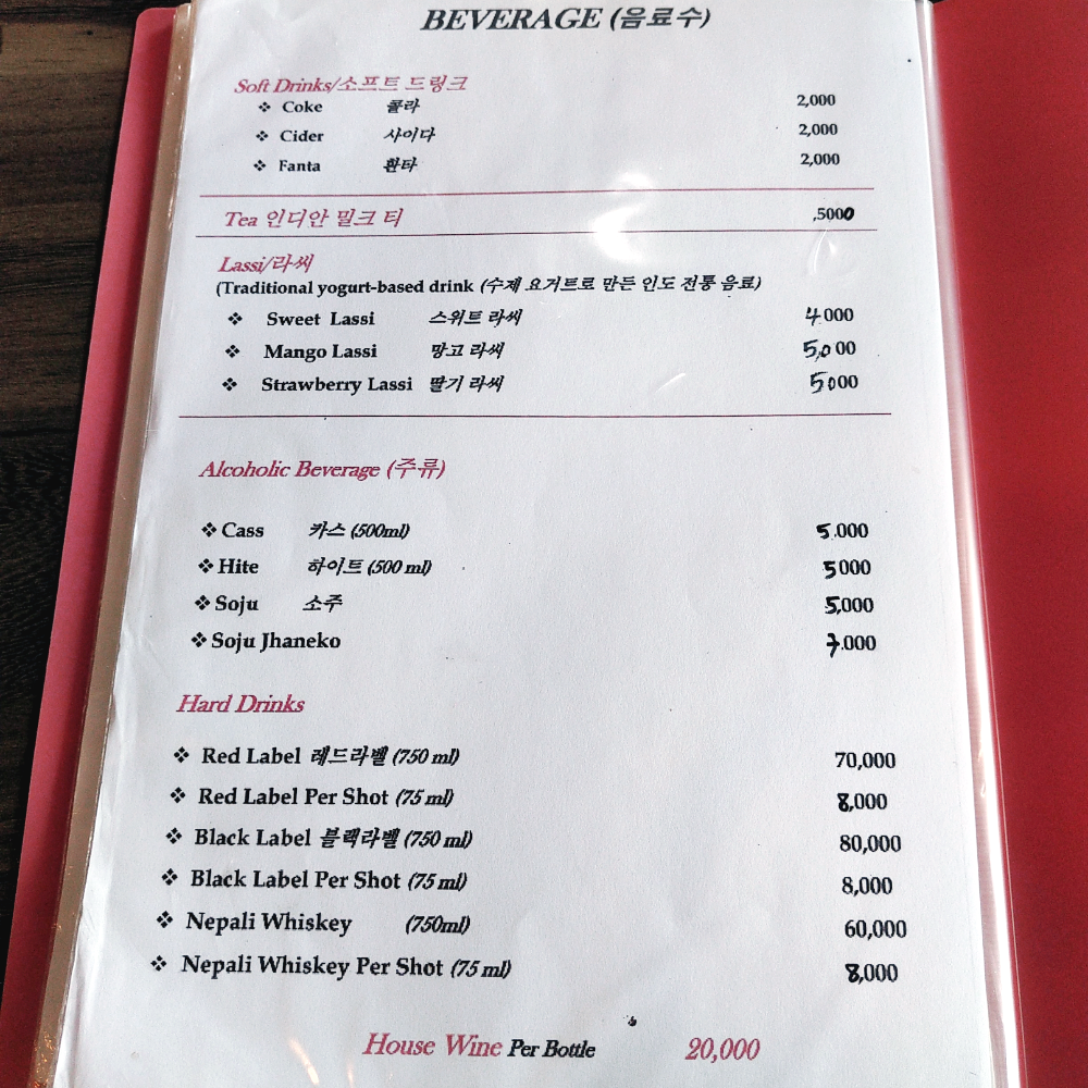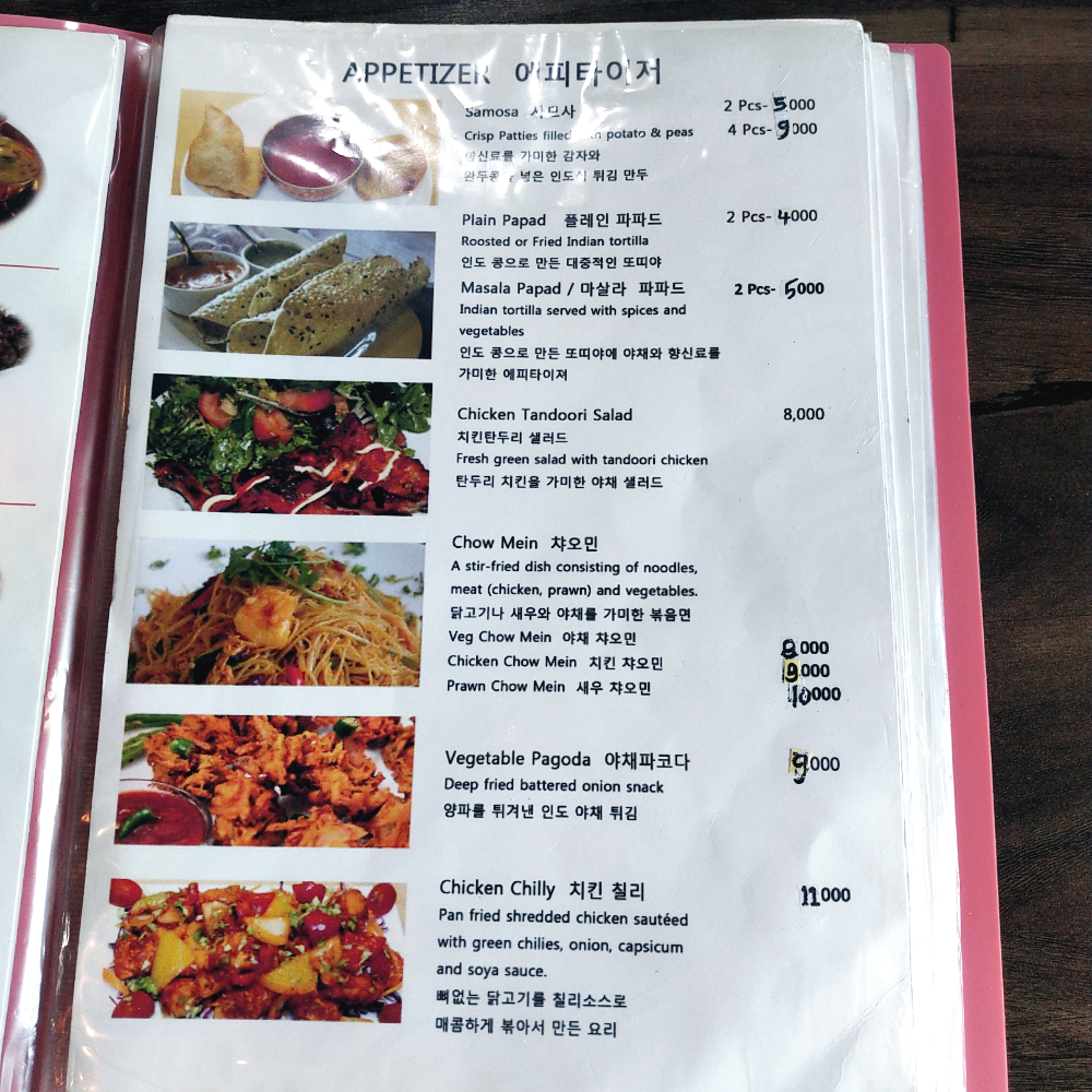 인도인인지 네팔인인지는 모르겠지만, 다들 한국어를 잘하셔서 주문하는 데 무리는 없었어요.