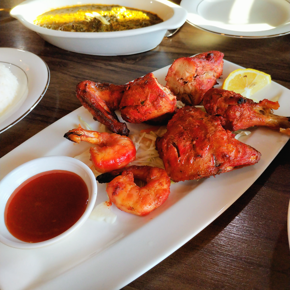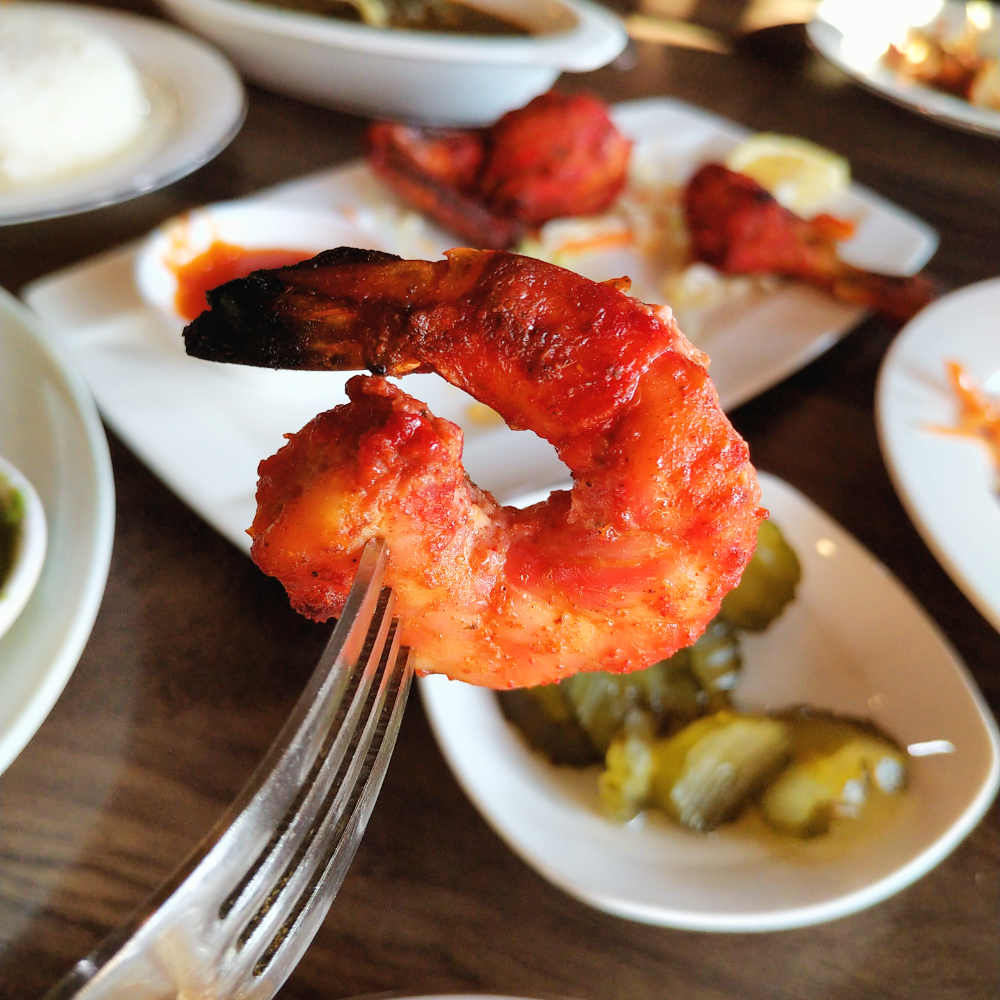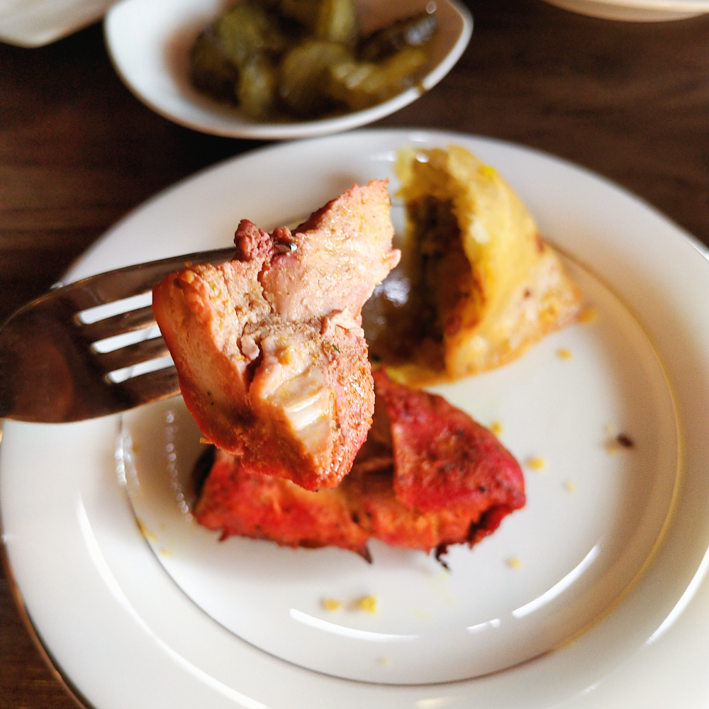 2인 세트여서 탄두리 치킨 4조각과 구운 새우 2마리가 나왔어요.