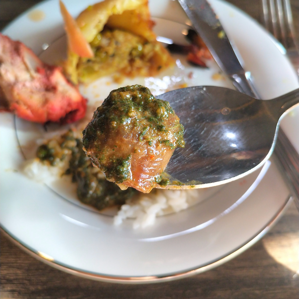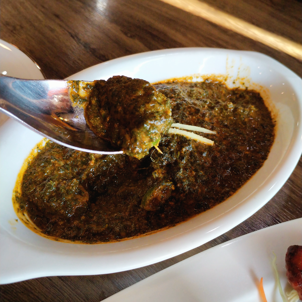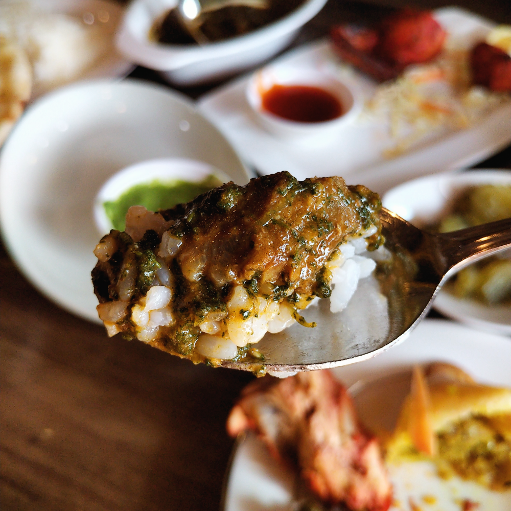 커리 종류는 고스트 팔락이고요, 시금치, 마늘, 생강, 허브로 만든 소스에 양고기를 넣어 요리한 커리라고 합니다!
