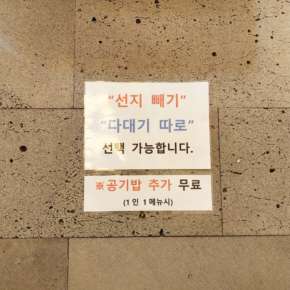 못 드시는 분은 선지 빼달라고 미리 말씀하시면 돼요!