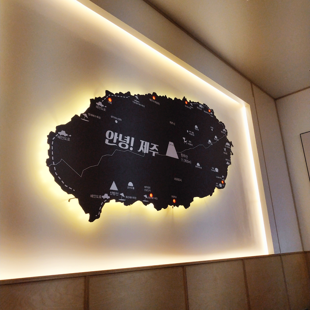한 쪽 벽면에 이렇게 제주도 지도가 인테리어 형식으로 있어요!