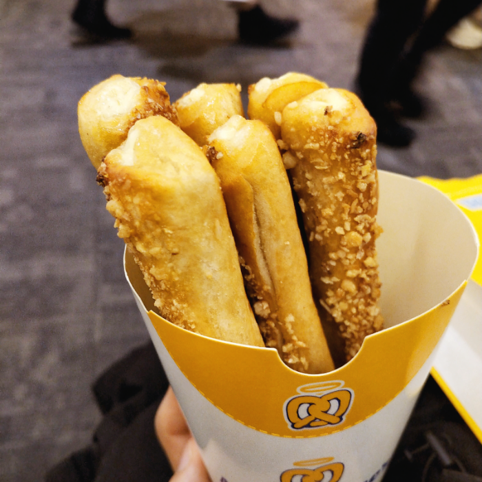 아몬드 크림치즈 스틱 프레즐을 먹었어요.