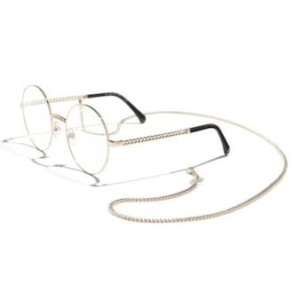 라운드 쉐입의 안경으로 귀여운 느낌이 들며 체인 디자인의 안경테가 포인트입니다.