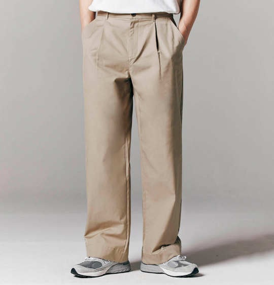 지오다노 뉴 차은우 코튼 트윌 와이드 핀턱 팬츠는 탄탄한 조직감의 남성 바지예요.