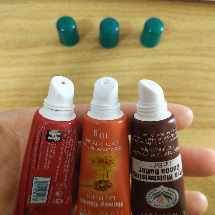 왼쪽부터 차례대로, 딸기 - 허니 - 코코아버터 립밤입니다.