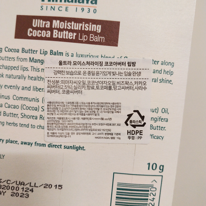 히말라야 울트라 모이스처라이징 코코아버터 립밤입니다.