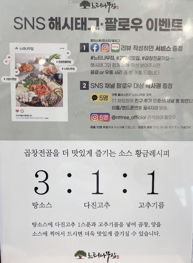 느티나무집은 곱창전골집이에요!