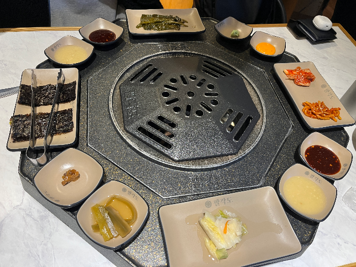 팔각도라는 식당 이름답게 식탁마다 8각형 철판이 있어요!