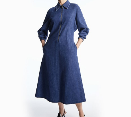 코스 데님원피스로는 집업 스타일의 긴팔 청원피스예요.
