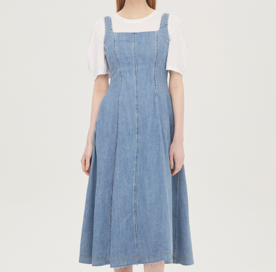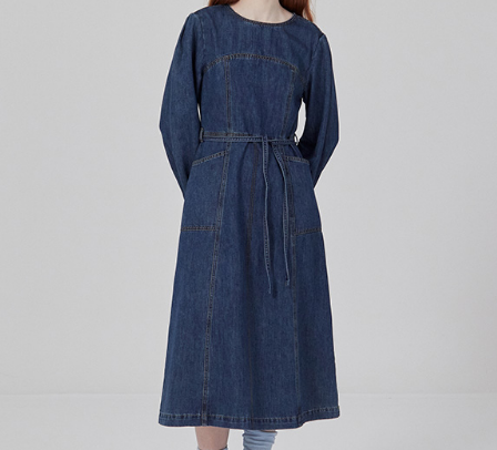 긴 기장의 데님원피스로 단정한 코디와 잘 어울릴 것 같아요.