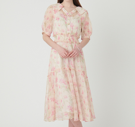 샤틴 플라워 프린트 쉬폰 원피스는 여리여리한 여성스러운 원피스로 제격인 꽃무늬 쉬폰원피스예요.