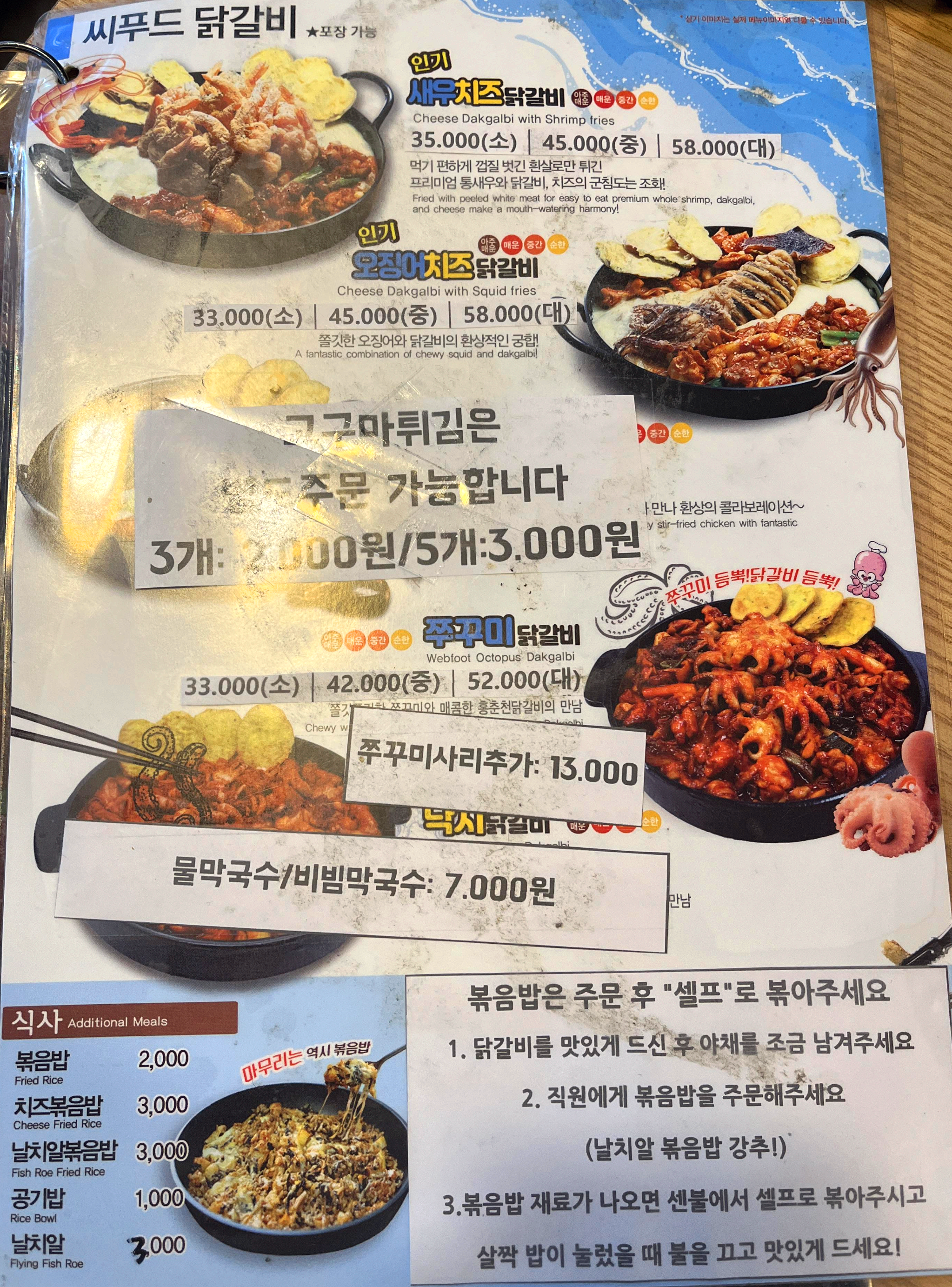새우, 오징어, 쭈꾸미를 비롯한 씨푸드닭갈비도 다음번에 꼭 먹어보려고요!