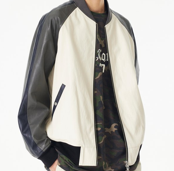 톰보이 레더자켓으로는 바시티 스타일의 에코레더자켓을 추천드려요.