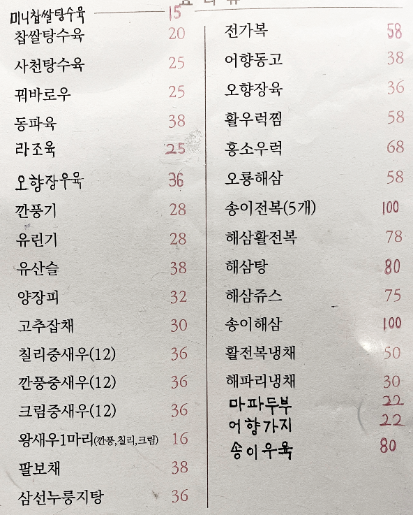 이외에도 전가복, 어향동고, 오향장육, 오룡해삼, 어향가지 등등 어려운 이름의 중식(?)도 있으니 뭔가 제대로 된 중국집 같아요!!