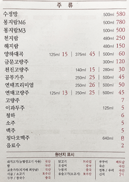 안산 중국집 북경 메뉴판 사진 첨부해드릴게요!
