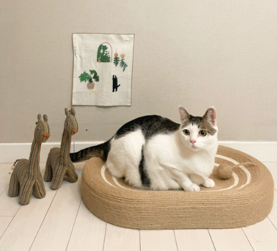 타원형 스크래쳐라서 고양이들이 이 위에서 식빵도 자주 굽고 낮잠도 많이 자요.