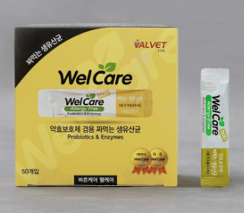 강아지용 웰케어 유산균은 스틱형으로 한 포씩 간편하게 짜 먹이기 좋은 제품입니다.