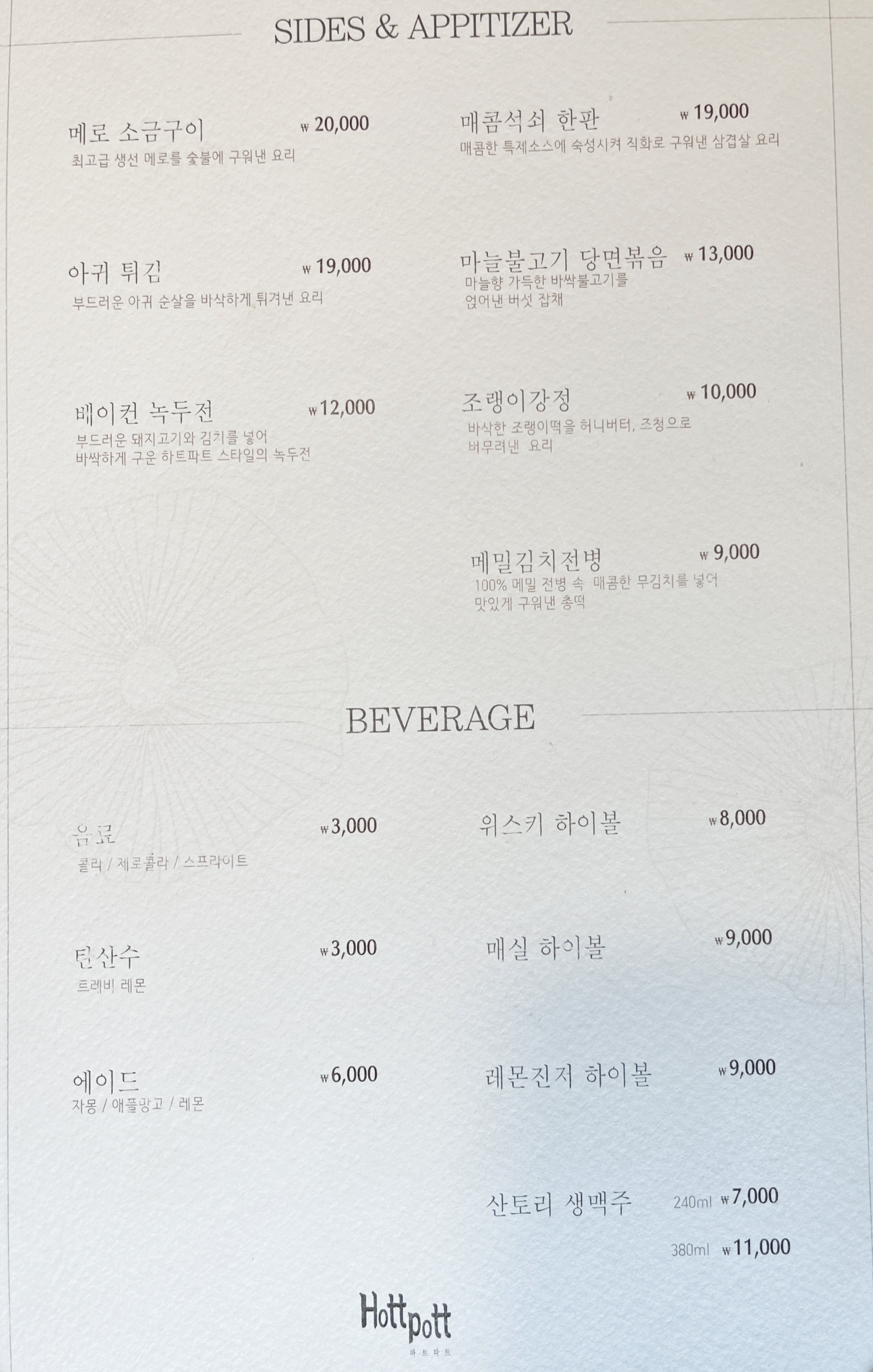 메로 소금구이, 아귀 튀김 등 사이드 메뉴도 있습니다.
