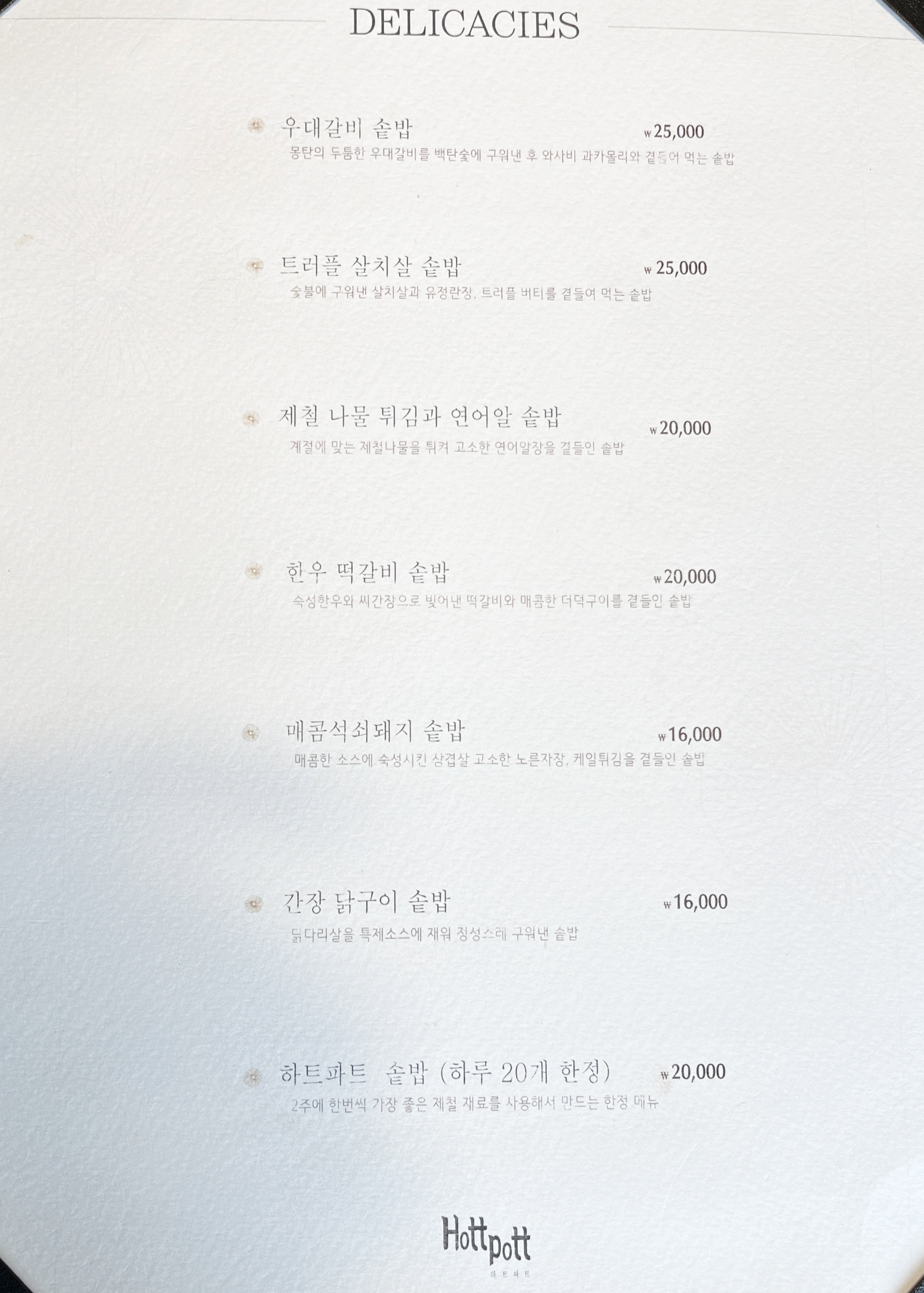 다음 번에는 제철 재료로 만든다는 하트파트 솥밥을 먹어보려고요!