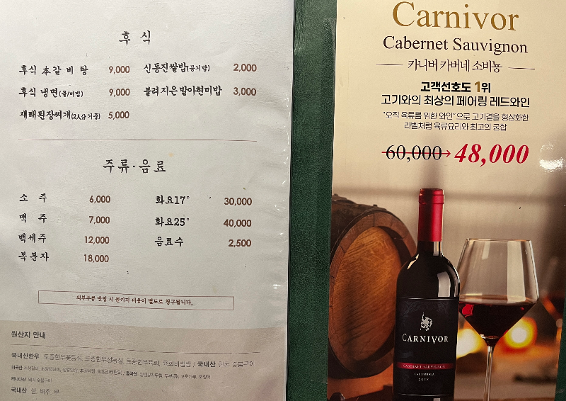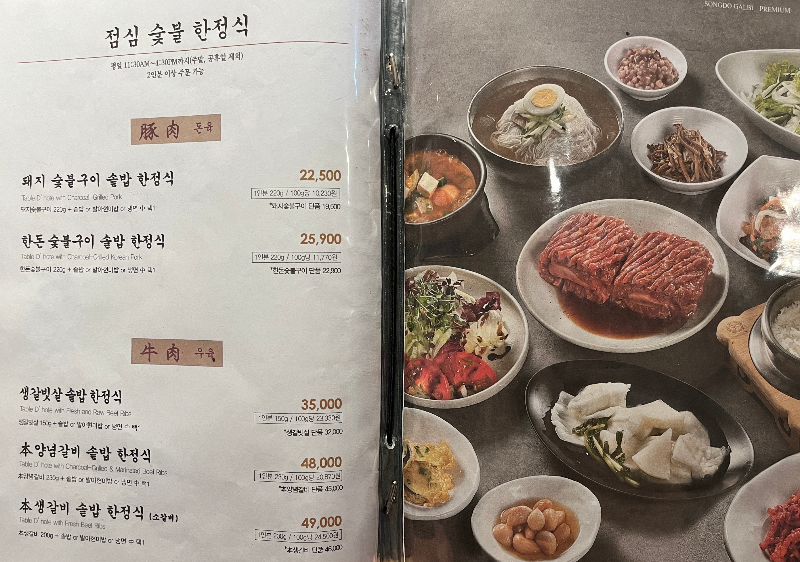 송도갈비 천지연 메뉴 가격이 궁금하시다면